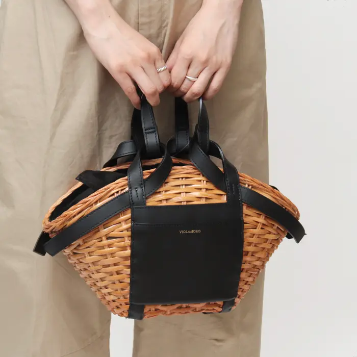 VIOLAd'ORO ヴィオラドーロ MIRO スプリットラタン かごバッグ V-8637 キャメル/ブラック