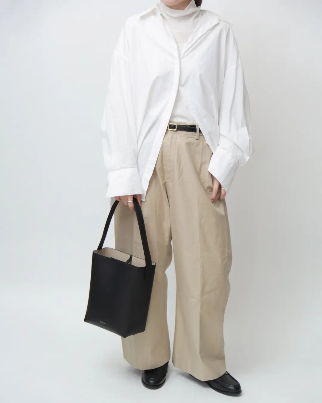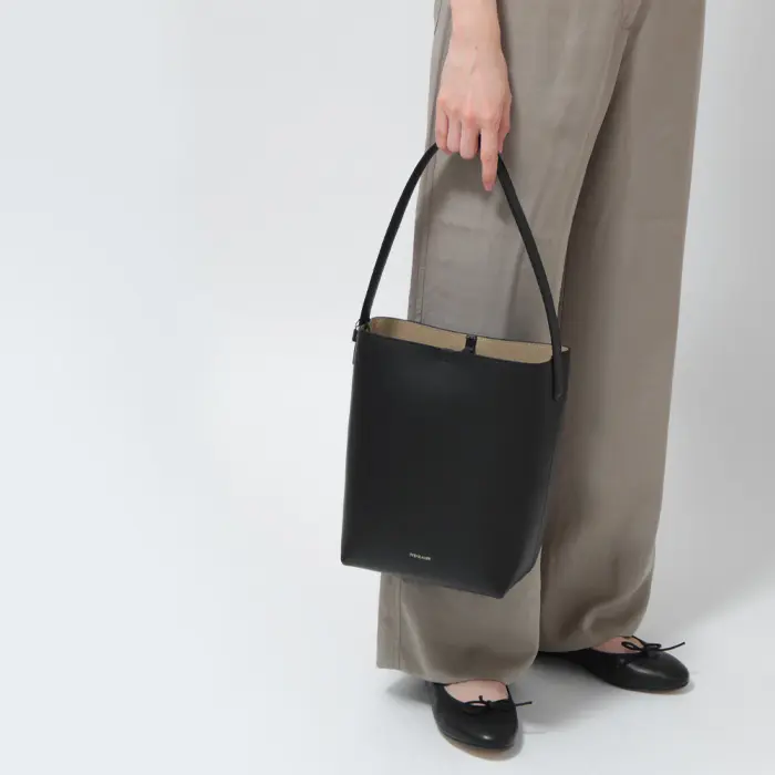 細すぎず太すぎない、絶妙な約3cm幅のハンドルは、肩掛けしやすく持ちやすい設計。両手を空けたい時にも便利で、スッキリとお持ちいただけます。