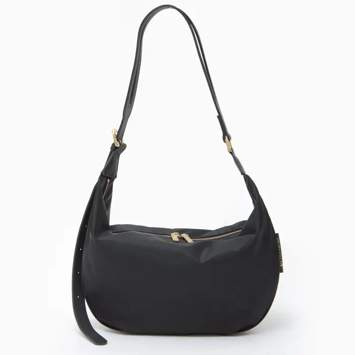 ナイロンの軽やかさでコーディネートに抜け感をプラスする、"VIOLAd'ORO ヴィオラドーロ"のショルダーバッグ。ゴールドの金具とレザーのアクセントが、カジュアル過ぎず、大人の装いにぴったりのデザインに仕上がっています。必需品にプラスαの荷物も収納できるのでしっかりとした収納量。デイリーバッグとしてはもちろん、通勤バッグや旅行にもおすすめです。