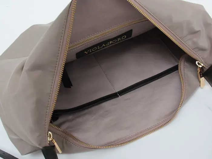 VIOLAd'ORO ヴィオラドーロ BIANCA ナイロンショルダーバッグ V-2248 トープ/ブラック