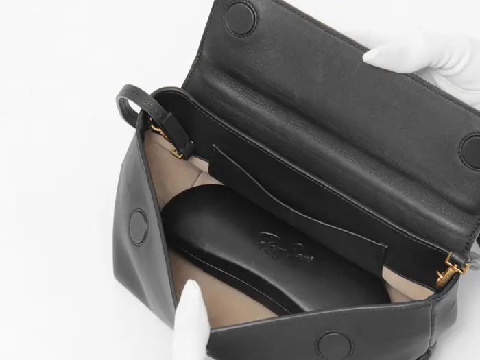 開閉は開け閉めが簡単なマグネットボタン仕様。メガネケースが収まるサイズ感で、スマホにミニ財布、エコバッグなどのお出かけの必需品が収まります。