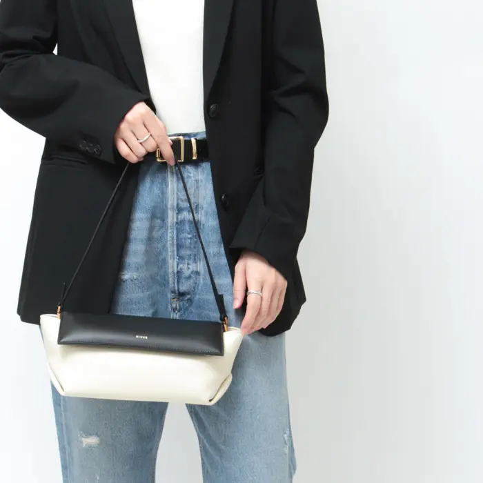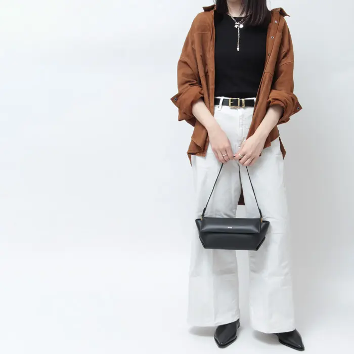 ぷっくりとしたフラップと細いハンドルが特徴の横長ミニバッグは、ひとクセ効いたクールなバッグで、洗練されたきちんと感をプラスしてくれます。クラッチにもショルダーにもなり、カジュアルにもモードにも使い分けられます。