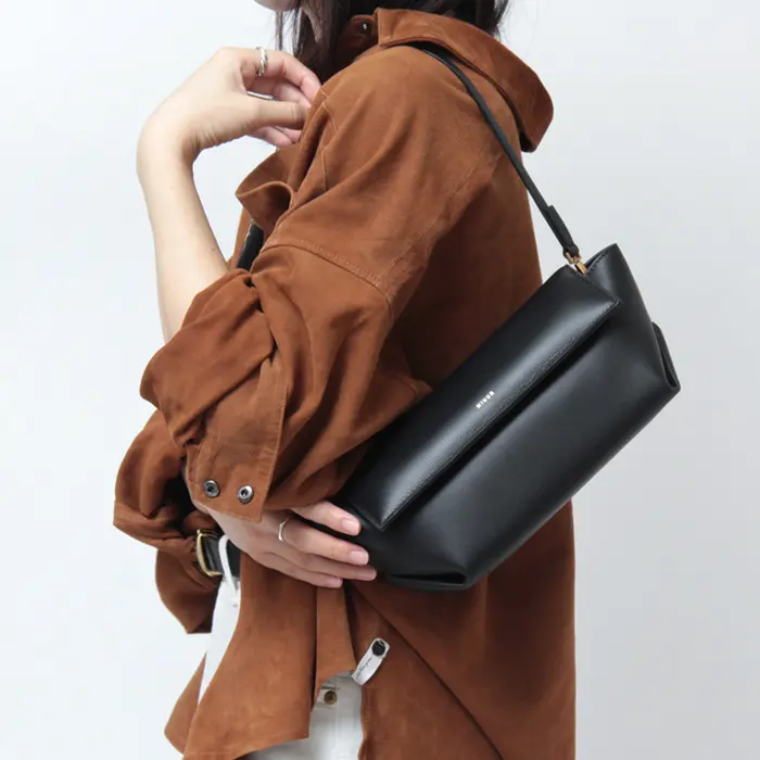 ぷっくりとしたフラップと細いハンドルが特徴の横長ミニバッグは、ひとクセ効いたクールなバッグで、洗練されたきちんと感をプラスしてくれます。クラッチにもショルダーにもなり、カジュアルにもモードにも使い分けられます。