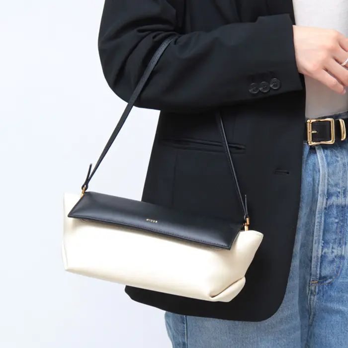 現代的なデザインとスペインの丁寧な職人技を組み合わせ、最高級の素材からタイムレスな作品を作り出す「MIUUR」。 日本建築のフォルムからインスピレーションを得た“銀座”は、高貴な牛革が折り畳まれたときにもたらす質感と色彩の戯れが、都会的でモダンな雰囲気を演出します。たっぷりとしたマチでお出かけの必需品をコンパクトに纏めて持ち歩けるアイテムです。