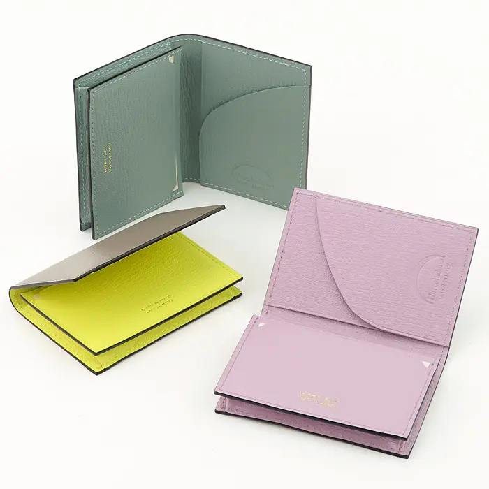 上品な配色使いがお洒落な"L'arcobaleno ラルコバレーノ"の名刺ケース。外側は落ち着いたカラー、開けると華やかなカラーが現れます。メインの収納部はボックスタイプなのでカードが沢山収納できます。その他にも収納を備えているので仕分けもでき、使い勝手も抜群です。耐久性に優れたゴートレザーを使用しているので、長くご愛用いただける逸品です。