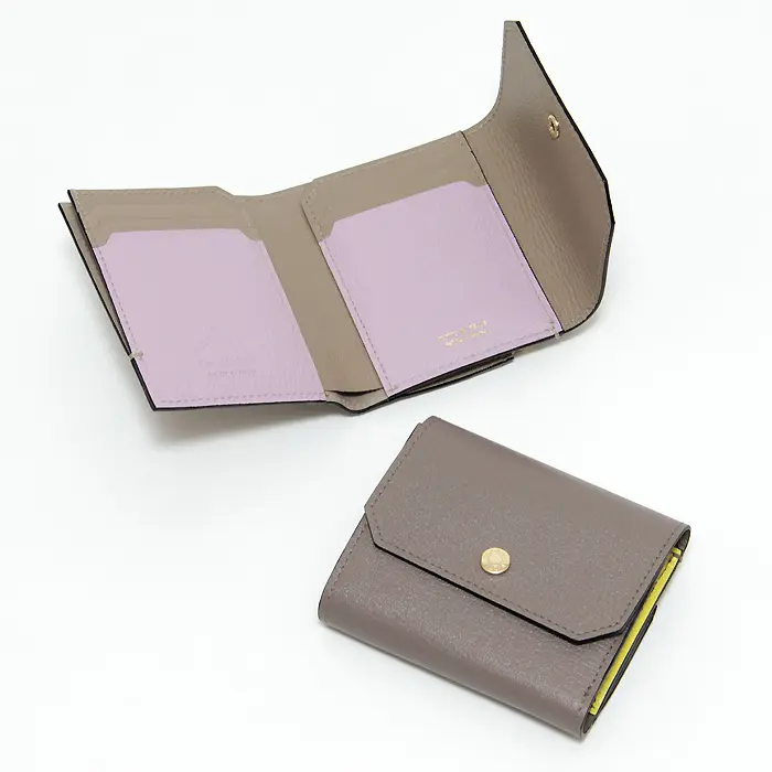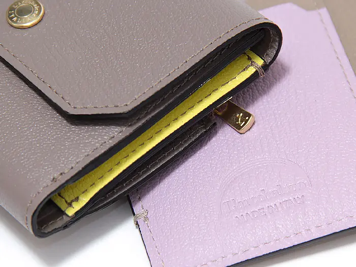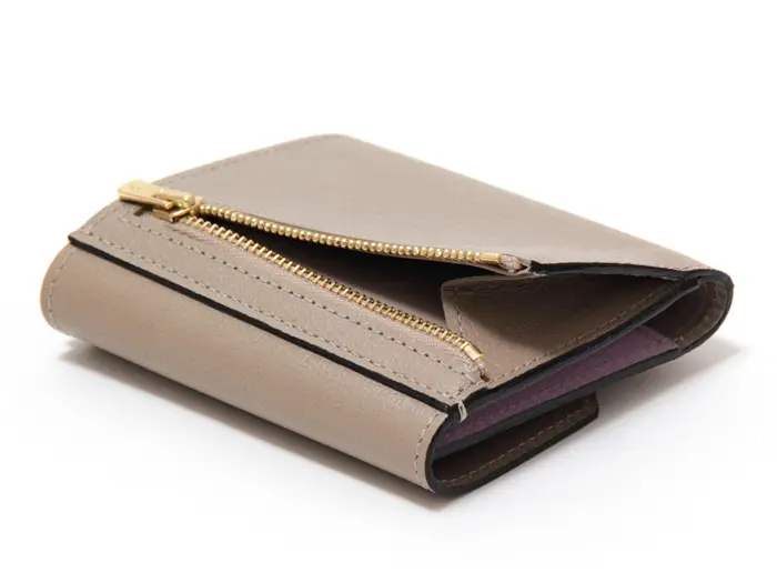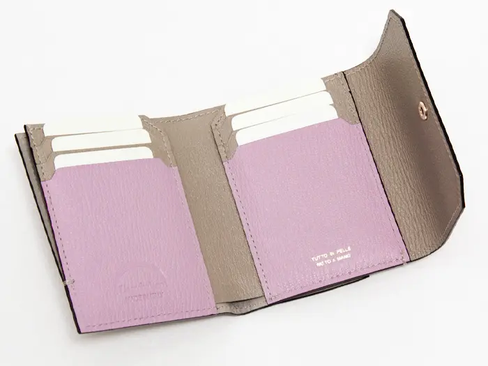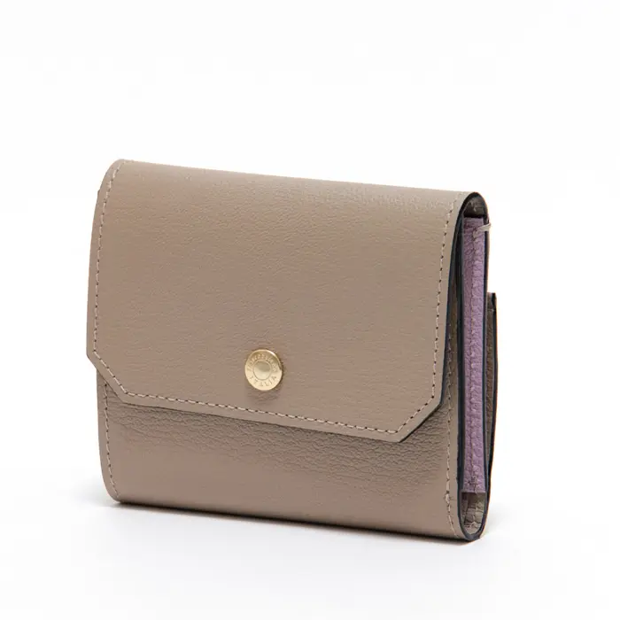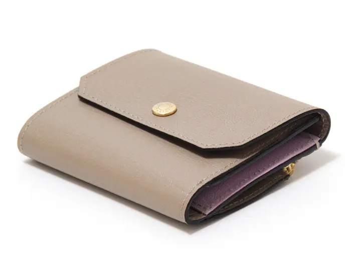 L'arcobaleno ラルコバレーノ ゴートレザー フラップ二つ折りウォレット BEIGE/LILLA