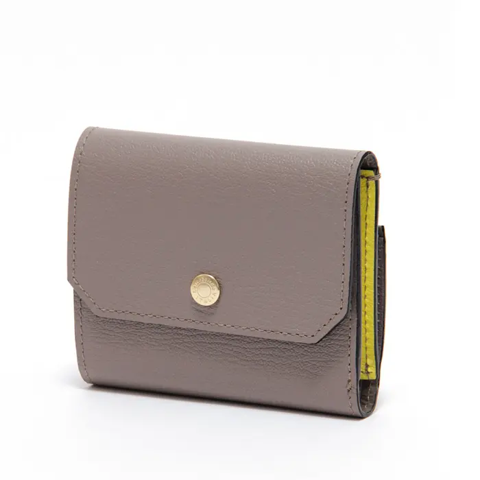 L'arcobaleno ラルコバレーノ ゴートレザー フラップ二つ折りウォレット TORTORA/YELLOW