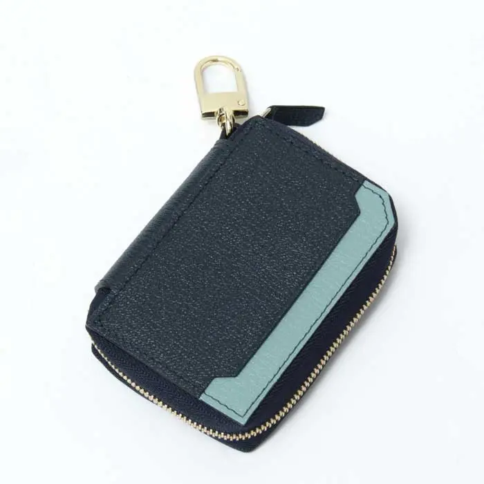L'arcobaleno ラルコバレーノ ゴートレザー  スマートWキーケース NAVY/MINT