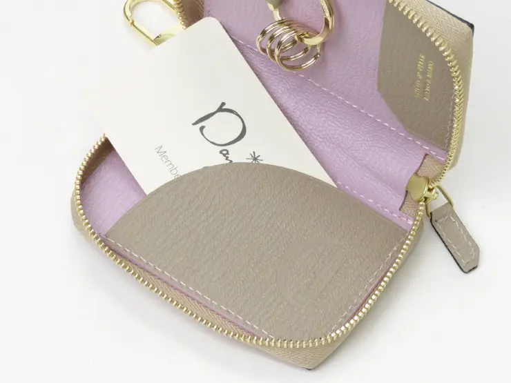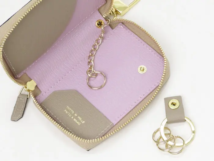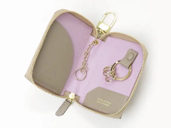 L'arcobaleno ラルコバレーノ ゴートレザー  スマートWキーケース BEIGE/LILLAC