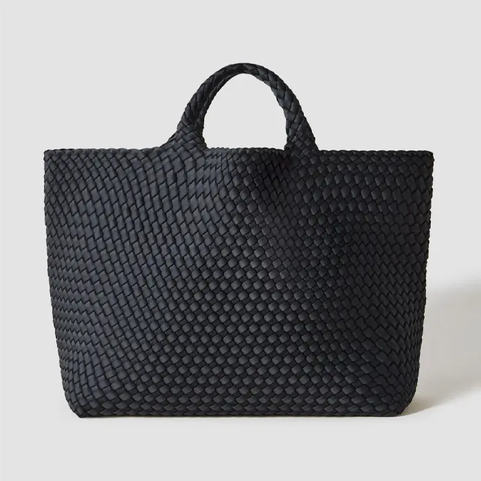 軽くて丈夫な弾力のある高密度フォーム素材を使用し、女性のライフスタイルに寄り添ったバッグを展開するNY発のバッグブランド"Naghedi/ナゲティ"。ダイビングスーツ等にも使われる機能性素材を丁寧に編み込んだメッシュ仕様のトートバッグ。B4サイズ対応のたっぷりとしたサイズ感。大容量のラージサイズは女性だけでなく、男性でもお持ちいただけるサイズ感です。お仕事バッグにはもちろん、旅行バッグやジム通いにもお使いいただけます。
