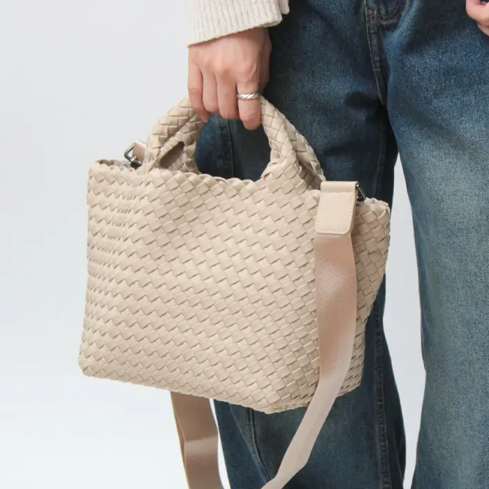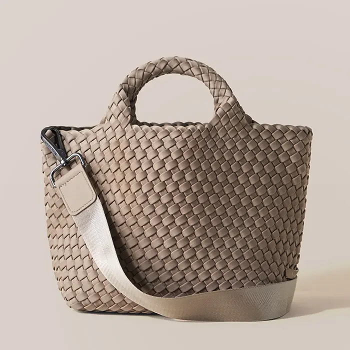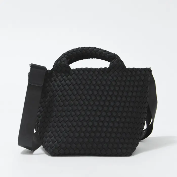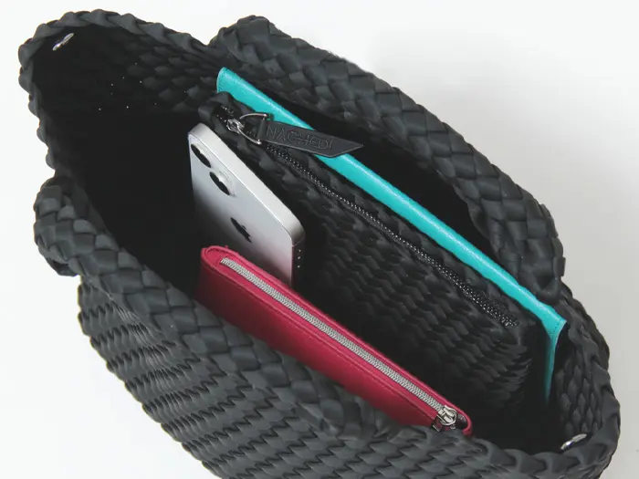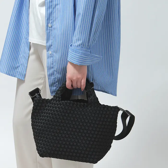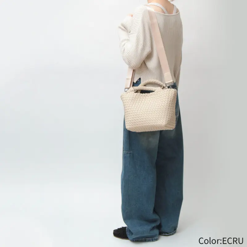 軽くて丈夫な弾力のある高密度フォーム素材を使用し、女性のライフスタイルに寄り添ったバッグを展開するNY発のバッグブランド"Naghedi/ナゲティ"。ダイビングスーツ等にも使われる機能性素材を丁寧に編み込んだメッシュ仕様のトートバッグ。取り外し可能なショルダーベルトを備えた2WAY仕様。長財布が収納可能なミニサイズは見た目以上の収納力で、デイリー使いしやすい絶妙なサイズ感です。シーンやコーデを選ばないテイストは、幅広い年代にオススメです。
