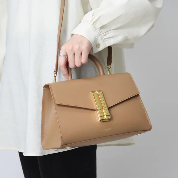 取り外し、長さ調節が可能なショルダーストラップ付き。両手が空き、通勤、ショッピングや旅行、お子様とのお出かけなど幅広いシーンで便利にお使いいただけます。ハンドバッグとして持っても素敵です。