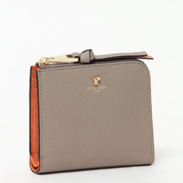 PELLE BORSA ペレボルサ Reinette luxe L字ファスナー 二つ折り ミニ財布 トープ/オレンジ