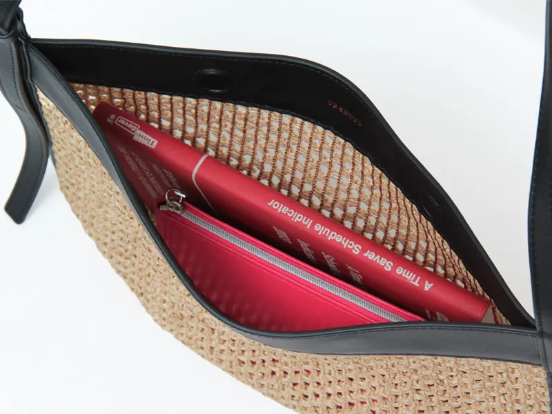 バッグ内側の口元マグネットを十字に留めることでシルエットのアレンジが可能。
