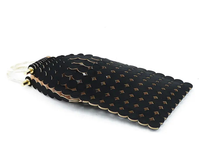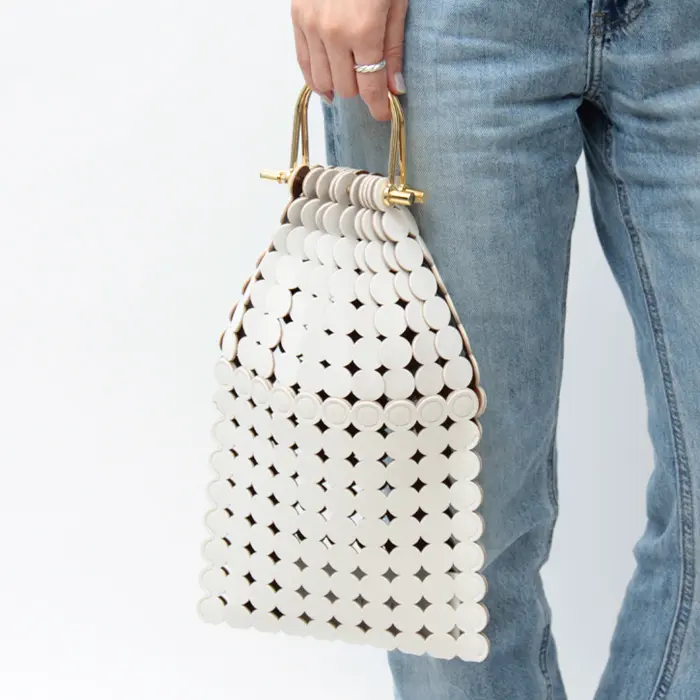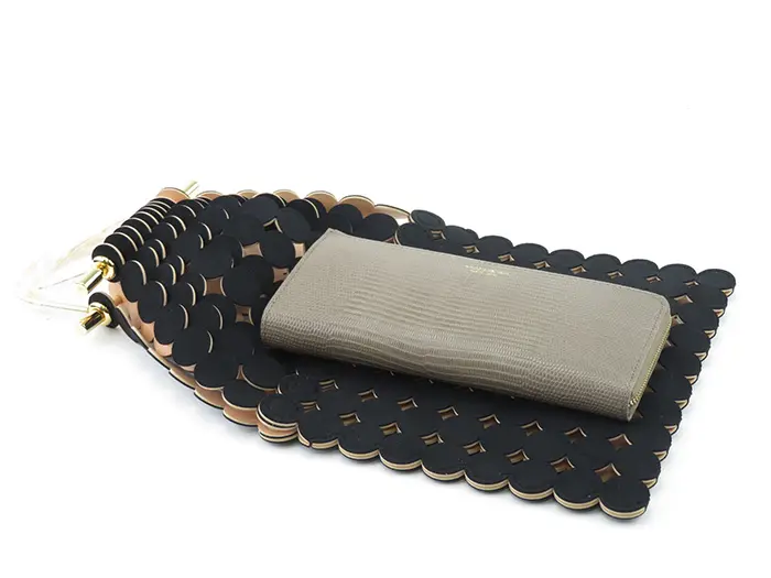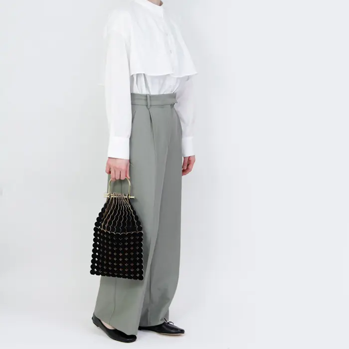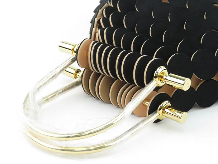 ハンドルには、真鍮製のゴールド金具を使用することで他にはないエレガントさをプラス。コーディネートのアクセントにもなりお食事やパーティーシーンにもオススメです。