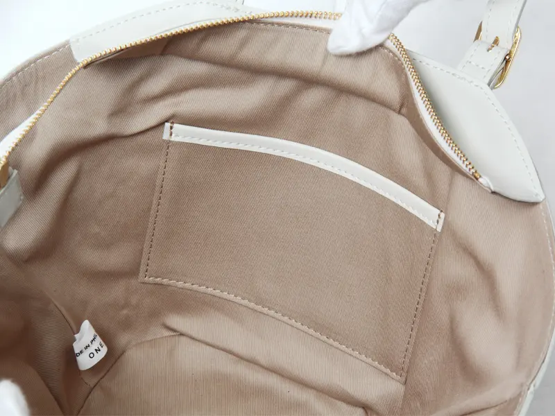 背面内側にファスナーポケットが1つ、正面内側にオープンポケットが1つあります。鍵やリップなどの収納に最適です。