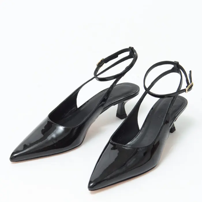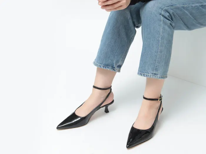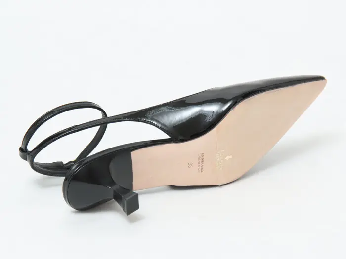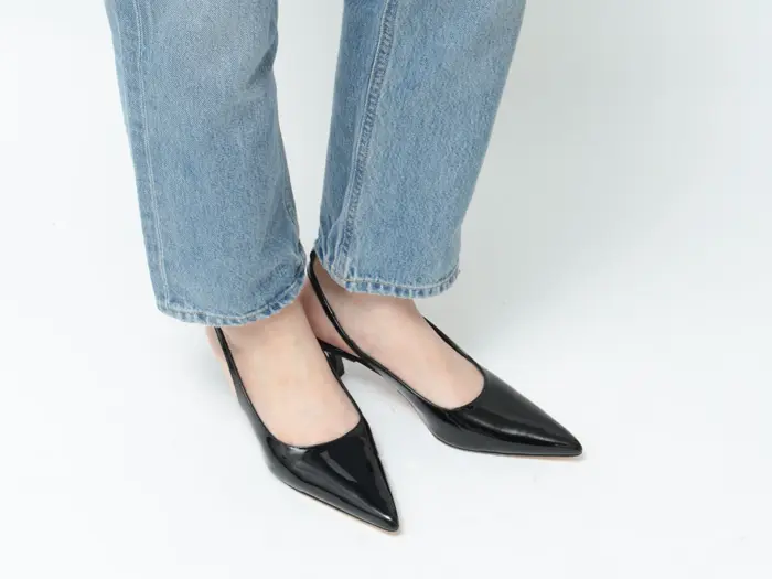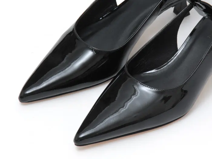 つま先は上品が叶うシャープなポインテッドトゥ。浅めの足入れで流れるようなカッティングラインが女性らしさをより際立たせ、どの角度から見ても美しいシルエットです。
