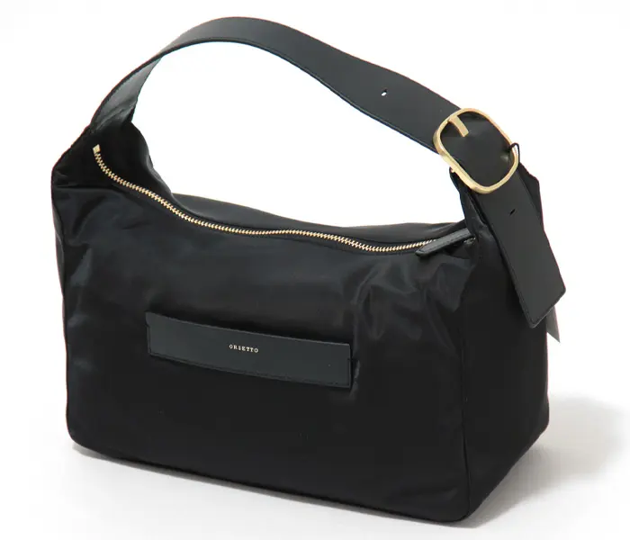 シンプルでありながら存在感のある佇まいの“ORSETTO オルセット”のナイロンバッグ。ワンハンドルのシンプルな形状は、肩掛けとしても手持ちとしても使いやすく、ナイロンのくったり感とオリジナルのゴールドバックルで「気負ってはいないけど、手を抜かない」ORSETTOらしさを表現。軽量ながらも耐久性に優れたナイロン素材を使用しており、忙しい一日を過ごす女性にとって理想的なアイテムです。