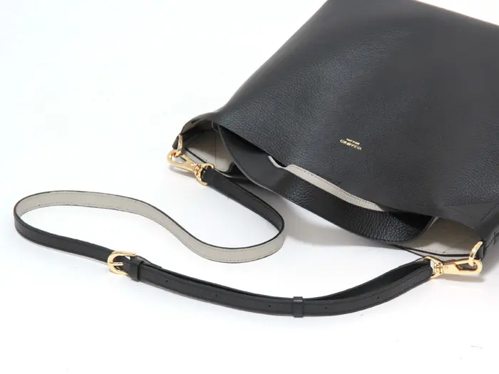 素材はシボ型押しを施したイタリアンレザー。シボを効かせているので傷が付きにくく、しなやかで柔らかな風合いです。裏地を施さず内側に色をのせることで、軽さのあるバッグに仕上げています。細かなシボが美しく上品な印象でお持ちいただけます。また、金具はオリジナルのパーツを使用し、細部にまでデザインのこだわりを感じます。