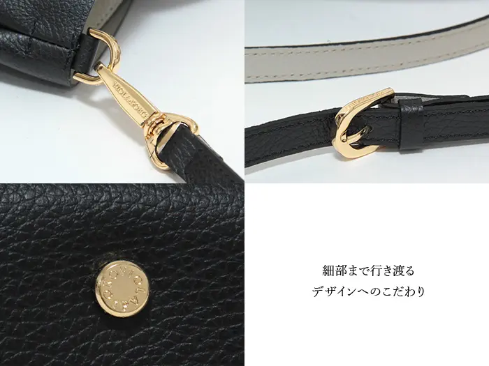 素材はシボ型押しを施したイタリアンレザー。シボを効かせているので傷が付きにくく、しなやかで柔らかな風合いです。裏地を施さず内側に色をのせることで、軽さのあるバッグに仕上げています。細かなシボが美しく上品な印象でお持ちいただけます。また、金具はオリジナルのパーツを使用し、細部にまでデザインのこだわりを感じます。