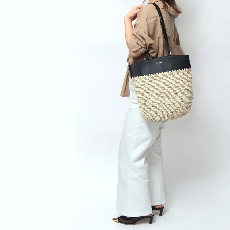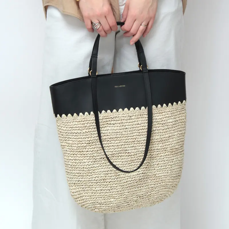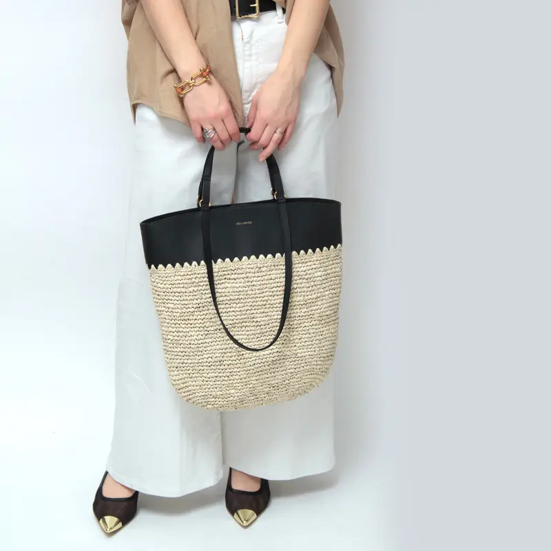 VIOLAd'ORO ヴィオラドーロ SANDRO ラフィア かごトート V-8841 ナチュラル/ブラック