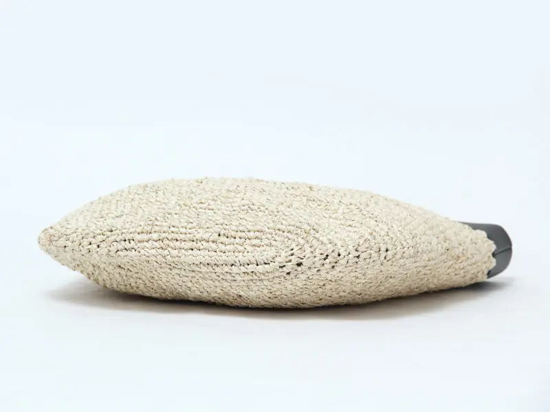 本体は天然素材ラフィアを使用しています。麻の一種で強度があり、丈夫で柔らかいのが特徴です。丁寧に編んだハンドメイドの温もり感じるカゴバッグは、フィリピンの職人さんにより一点一点手作業で編み上げられた温かみのあるナチュラルな風合いが魅力的です。
