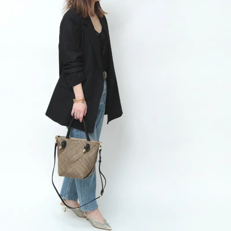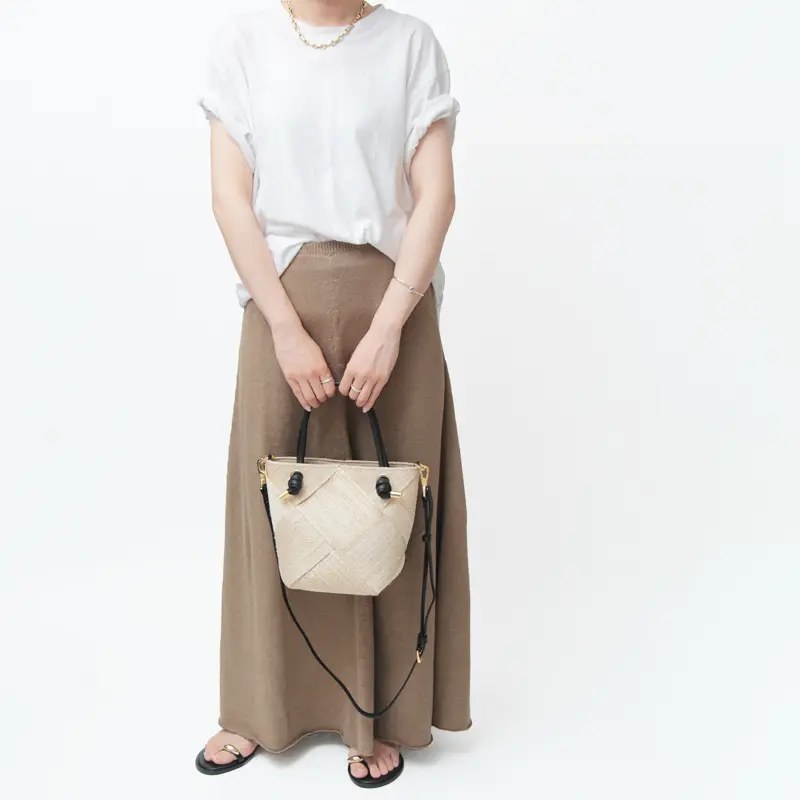 非常に高い堅牢度と軽さで知られるアバカ素材に本革を組み合わせることで、ラフさと上品さのバランスの取れたカゴバッグ。流行やシーズンに捉われないデザインで、日々のコーデにそっと寄り添ってくれるタイムレスな佇まいです。