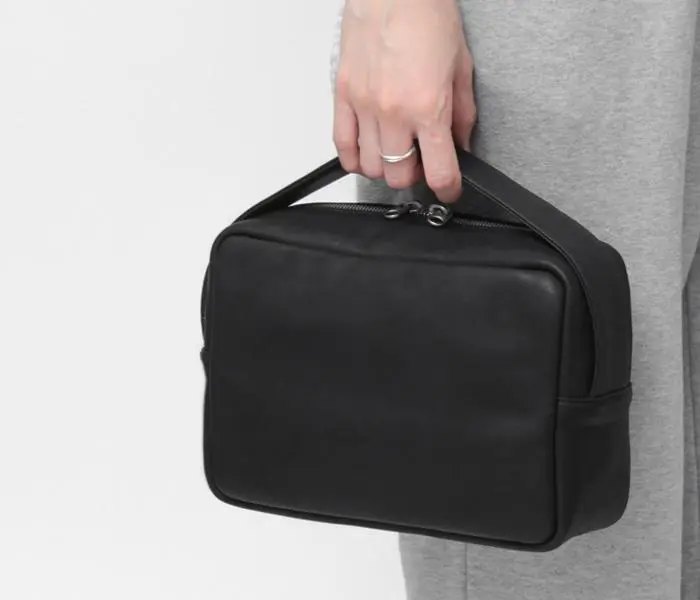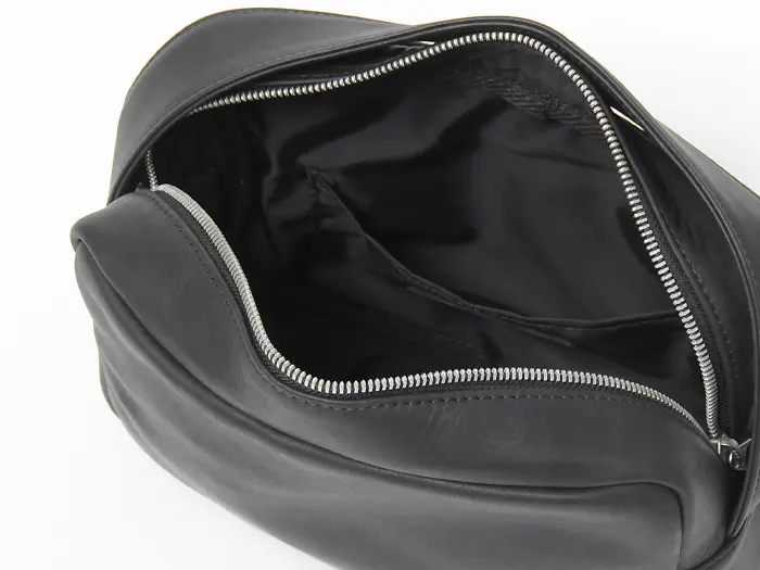 開閉はサッと開けられて荷物の出し入れがしやすいダブルジップの仕様。柔らかくしなやかな牛革なので、開口部がとても大きく開きます。中身がパッと見やすく荷物の出し入れもスムーズです。