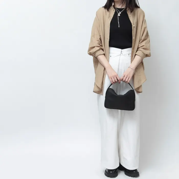 小さめながらもマチがしっかりとあるボックス型なので、お出かけにマストな荷物が入る、見た目よりも"入る"絶妙なサイズ感。長財布やキーケースに加え、折り畳み傘等の長さがある物も収納できます。