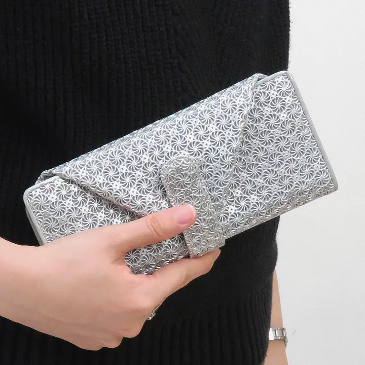 小銭入れと同じ向きのままに、カード・お札が取り出せるので、無駄のないスムーズな動きで出し入れでき、所作も美しく見せてくれます。8ヶ所のカード収納は1ヶ所に2~3枚は入るので20枚程度収納可能です。お札収納は3ヶ所あり、レシートや領収書の整理も◎ また通帳やパスポートも入れていただける大きさと容量があるロングウォレットです。