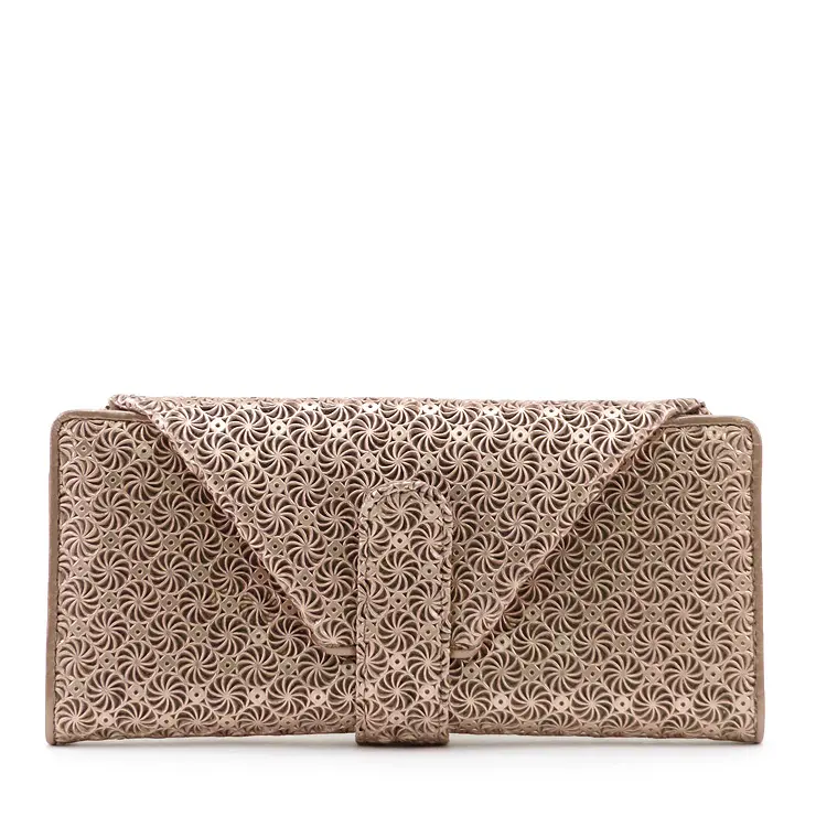 イタリア語で向日葵を意味する"GIRASOLE ジラソーレ"。牛革に型押しと型抜きを行った立体感のある素材感とメタリックの独特なカラーリングが特徴。個性的で品がありエレガントな雰囲気がとても魅力的です。リピーターの方も多く、男女兼用デザインなので大切な方へのプレゼントや自分へのご褒美にオススメです。