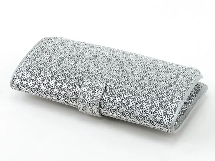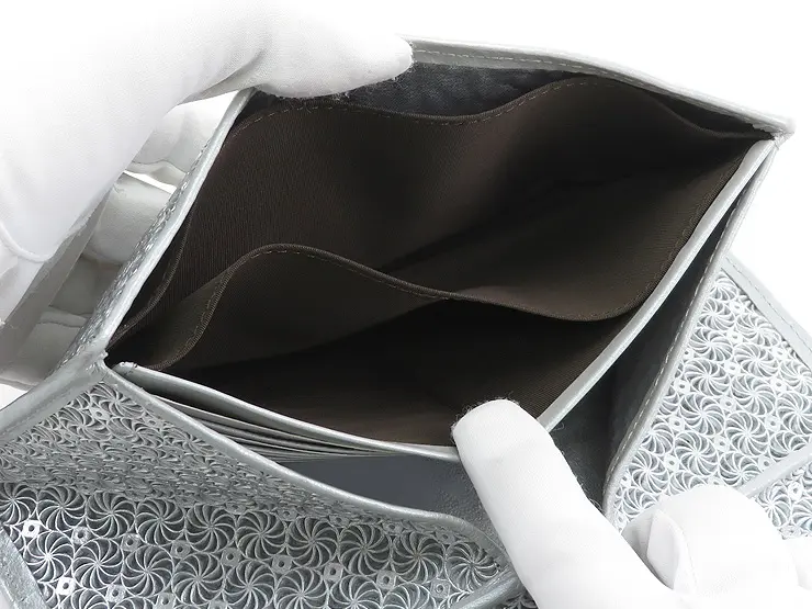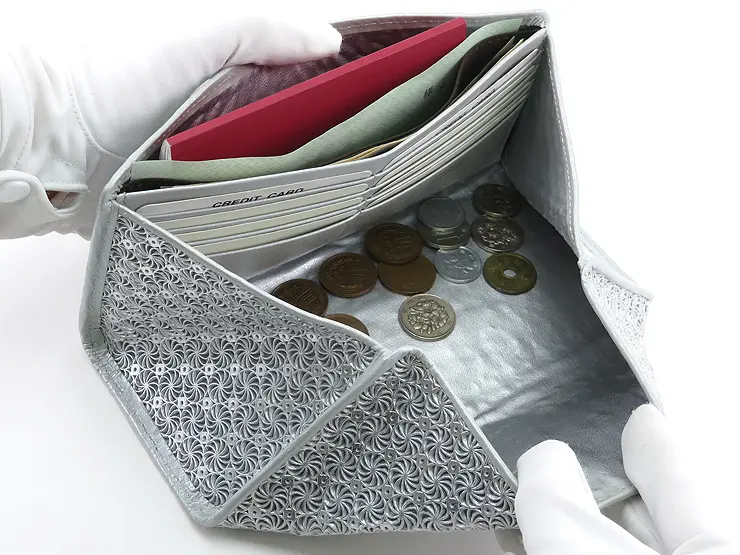 小銭入れと同じ向きのままに、カード・お札が取り出せるので、無駄のないスムーズな動きで出し入れでき、所作も美しく見せてくれます。8ヶ所のカード収納は1ヶ所に2~3枚は入るので20枚程度収納可能です。お札収納は3ヶ所あり、レシートや領収書の整理も◎ また通帳やパスポートも入れていただける大きさと容量があるロングウォレットです。