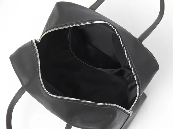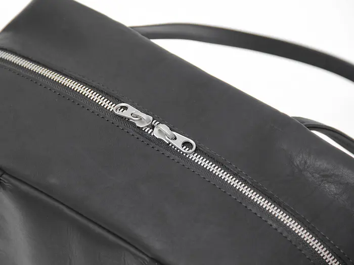 開閉はサッと開けられて荷物の出し入れがしやすいダブルジップの仕様。柔らかくしなやかな牛革で、開口部がとても大きく開きます。カバンの半分まで大きく開く仕様なので、肩にかけたまま中身も確認でき、必要なものをさっと取り出せます。