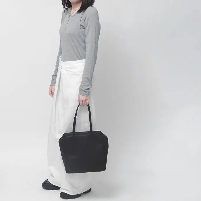 しっとりとしたマットな質感が大人っぽい雰囲気を醸し出すモルミルスのカバン。クタッと馴染む本革の品格と美しさが、いつものコーディネートをクラスアップし、普段使いから通勤やフォーマルなシーンにもスムーズにマッチします。毎日のように使うものこそ上質な物を選びたい。そんな大人の女性にマッチする、美しい日本製のレザートートです。
