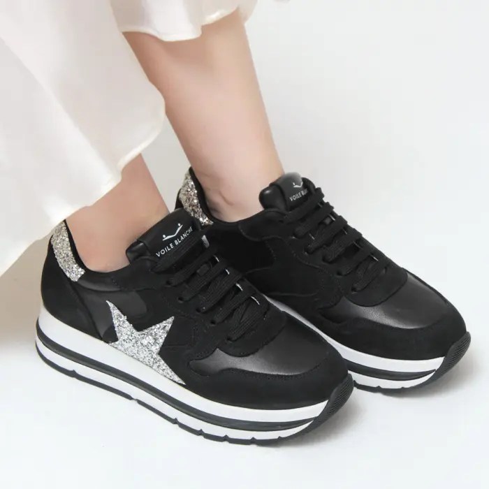 VOILE BLANCHE ボイルブランシェ MARAN STAR グリッター スター 厚底スニーカー BLACK/SILVER