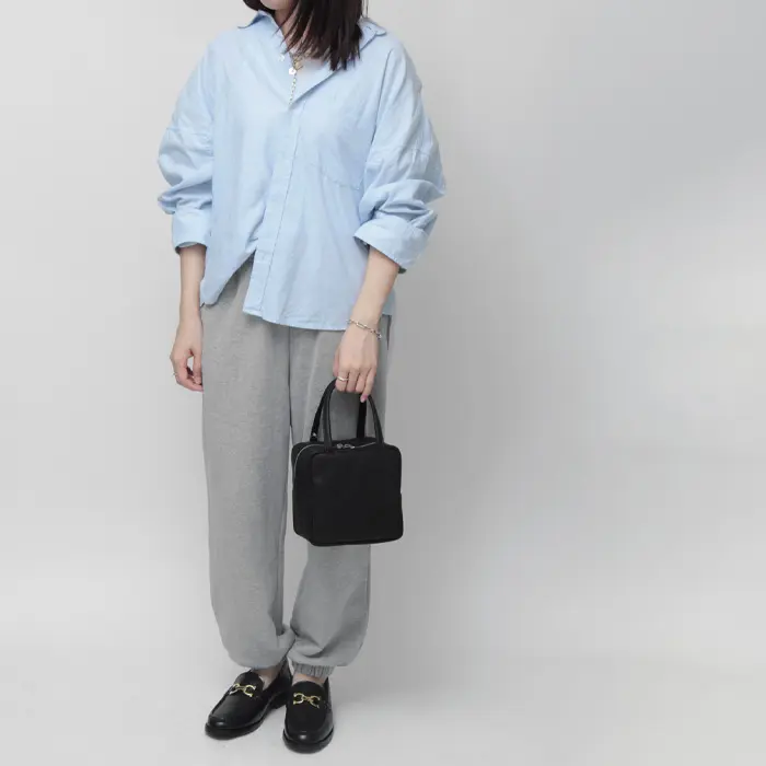 小さめながらもマチがしっかりとあるボックス型なので、お出かけにマストな荷物が入る、見た目よりも"入る"絶妙なサイズ感。ポーチや折り財布、キーケース等、必要な荷物はしっかり収納できます。