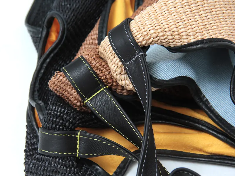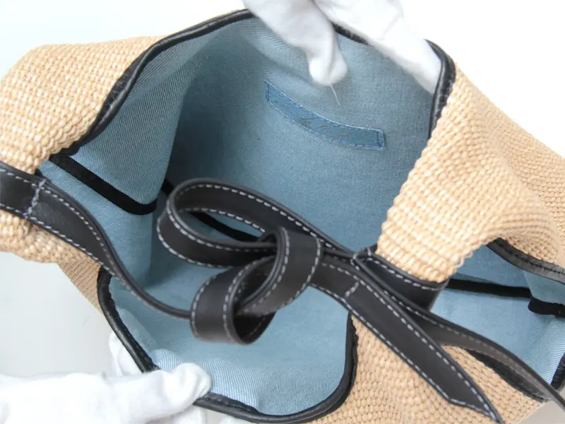 本体素材はコットンとポリアミドでできたラフィア調シートです。天然素材と比べ毛羽たちが少なくしなやかなで、服に引っかかりにくい取り扱いやすい素材です。上品でありながら気軽にお持ちいただけるかごバックです。