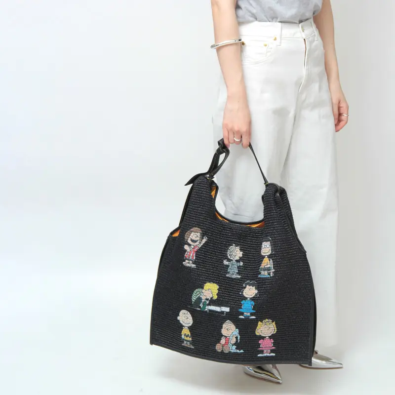 ラフィアシートの上品な風合いとカラーリングが魅力の"anita bilardi アニタビラルディ"のかごバッグ。世界中で幅広い年齢層に愛されるスヌーピーのプリントが施された可愛いカゴバッグが、今年はリサイズされて登場。大人の遊び心感じる他にはないユニークな仕上がりのバッグは、シンプルなコーディネートのアクセントに華を添えてくれます。肩掛けも可能なのでお出かけや旅行にピッタリ。