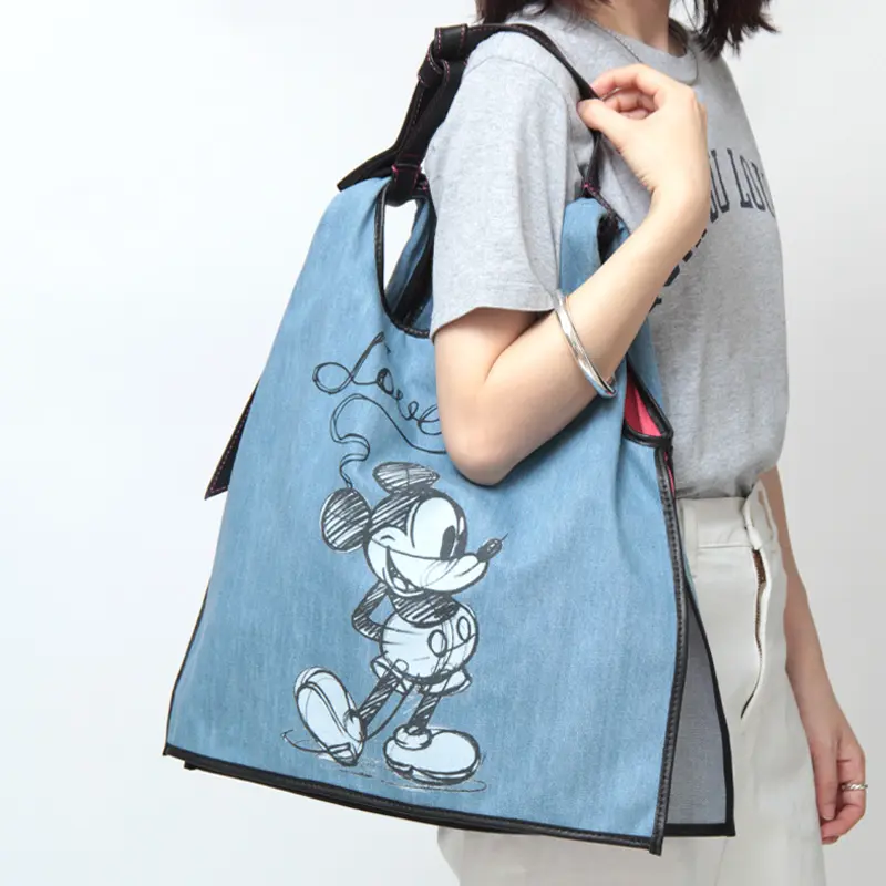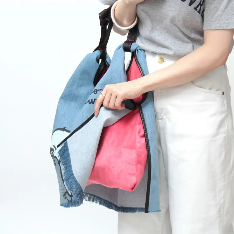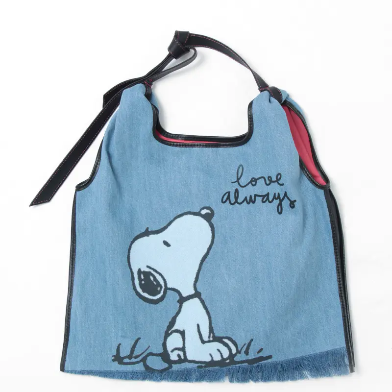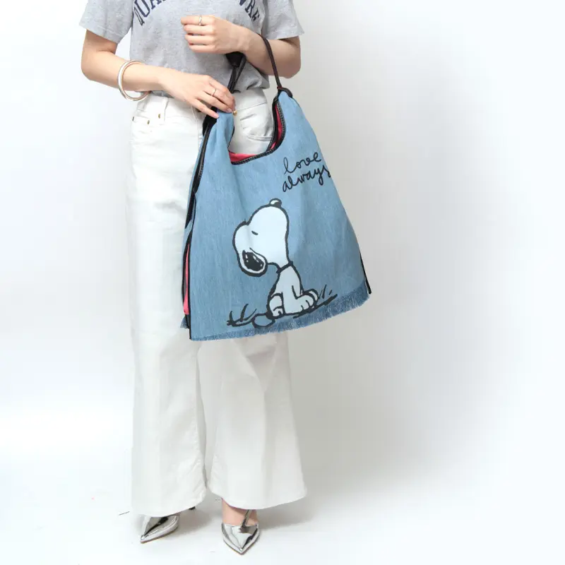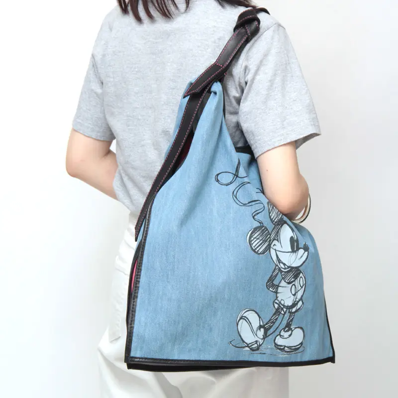 軽やかなデニム素材で、こなれ感とラフなテイストを楽しめる「anita bilardi アニタビラルディ」のトートバッグ。世界中に幅広い年齢層のファンを持つミッキーマウスとスヌーピーのプリントが施され、お出掛けが楽しくなるアイテムです。裏地のピンクがチラリと見え、シンプルなコーディネートのアクセントに華を添えてくれます。デニムは軽量で丈夫、柔軟性もあり、肩掛けできるのでお出かけや旅行にぴったりです。