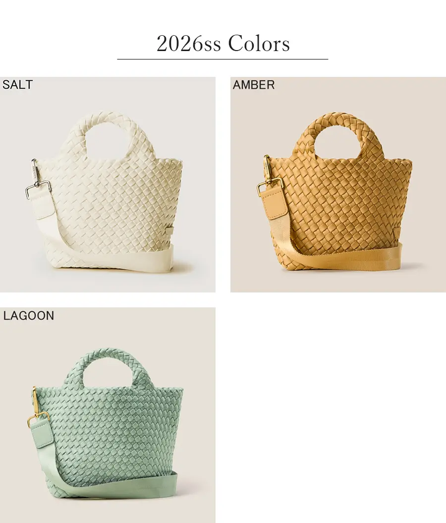 軽くて丈夫な弾力のある高密度フォーム素材を使用し、女性のライフスタイルに寄り添ったバッグを展開するNY発のバッグブランド"Naghedi/ナゲティ"。ダイビングスーツ等にも使われる機能性素材を丁寧に編み込んだメッシュ仕様のトートバッグ。取り外し可能なショルダーベルトを備えた2WAY仕様。長財布や必要最低限の荷物が収まりポケット感覚でお持ちいただけます。シーンやコーデを選ばないテイストは、幅広い年代にオススメです。