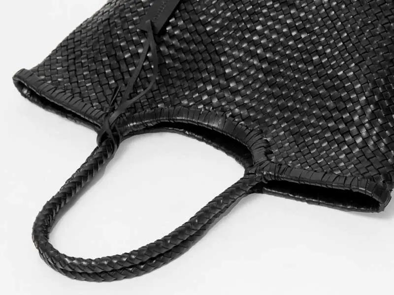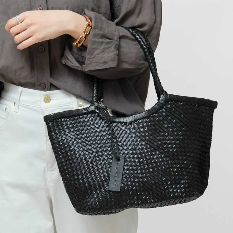 柔らかなヤギ革を使用した "The Bagmati バグマティ" のメッシュトートバッグ。職人の手仕事によって丁寧に編み込まれた美しい網目が、上品で洗練された印象を与えます。しなやかで上質なレザーは使うほどに手になじみ、深みのある風合いへと変化。 おでかけ必需品が余裕を持って収納できるサイズ感で、さまざまなシーンでも活躍します。 ハンドメイドならではの温かみと、シンプルながらも存在感のあるデザインが、大人の装いを引き立てる逸品です。