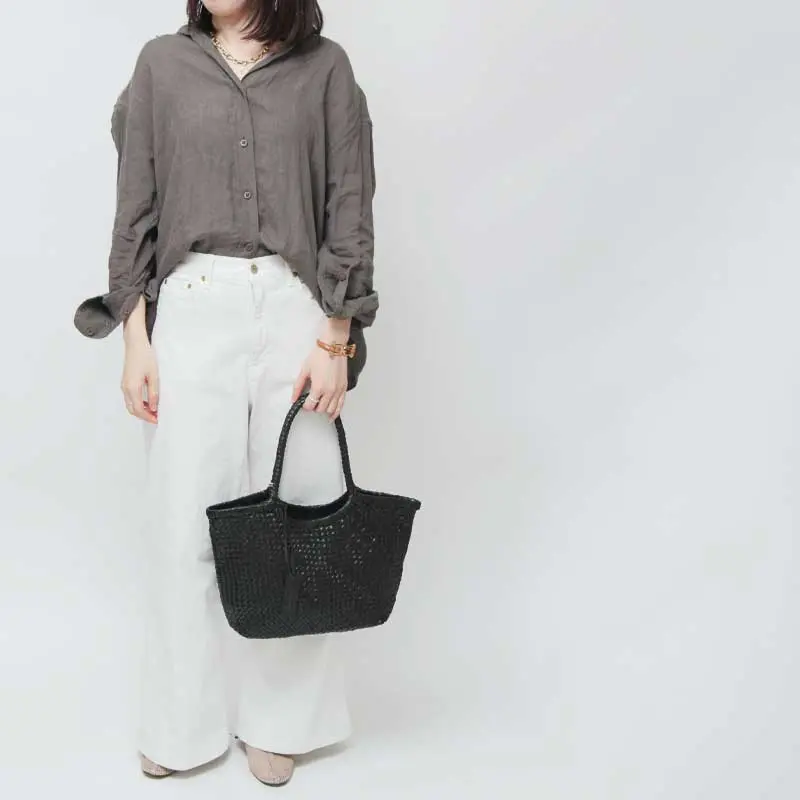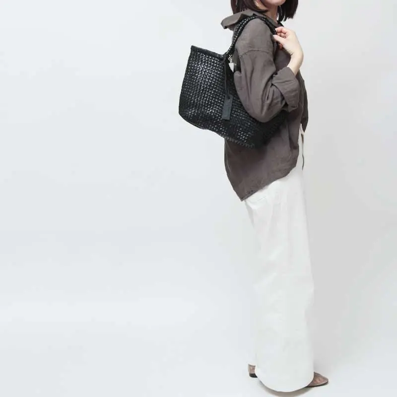 天然素材のカゴバッグとはひと味違う、レザーならではの上質な風合いが魅力的。夏は涼しげなカゴバッグのように軽やかに、秋冬にはコーディネートに抜け感をプラスし、オールシーズン活躍する万能なバッグです。使い込むほどに柔らかさと風合いが増し、経年変化による味わい深さも楽しめる、大人にふさわしいバッグです。