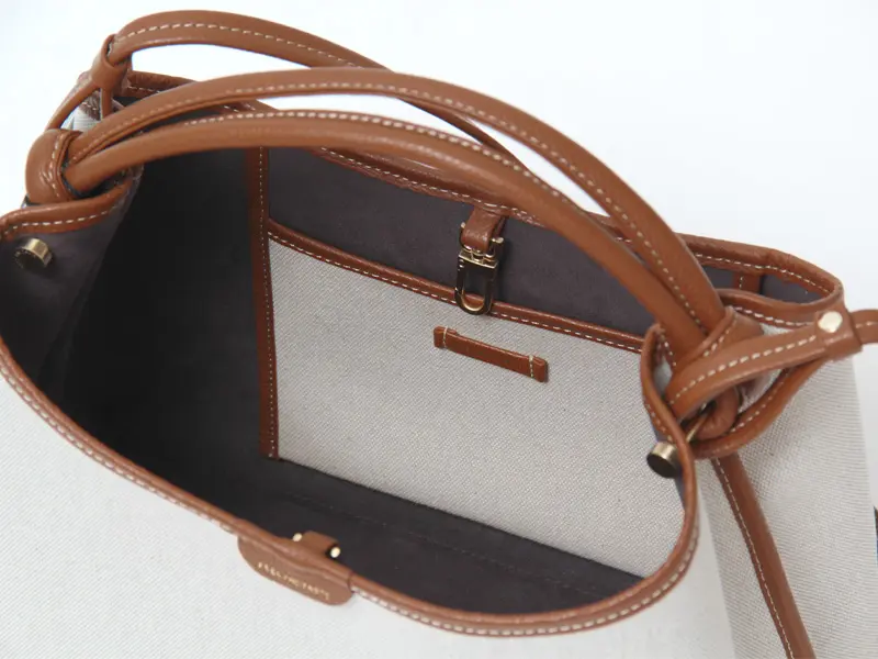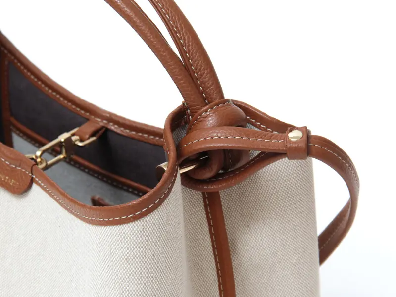 ナチュラルな風合いのボンディングキャンバス素材。コットンバッグの中でも、落ち着きがあり深みのある色味が特徴です。シワになりにくく、耐久性にも優れており、品のあるカジュアルな雰囲気を演出してくれます。