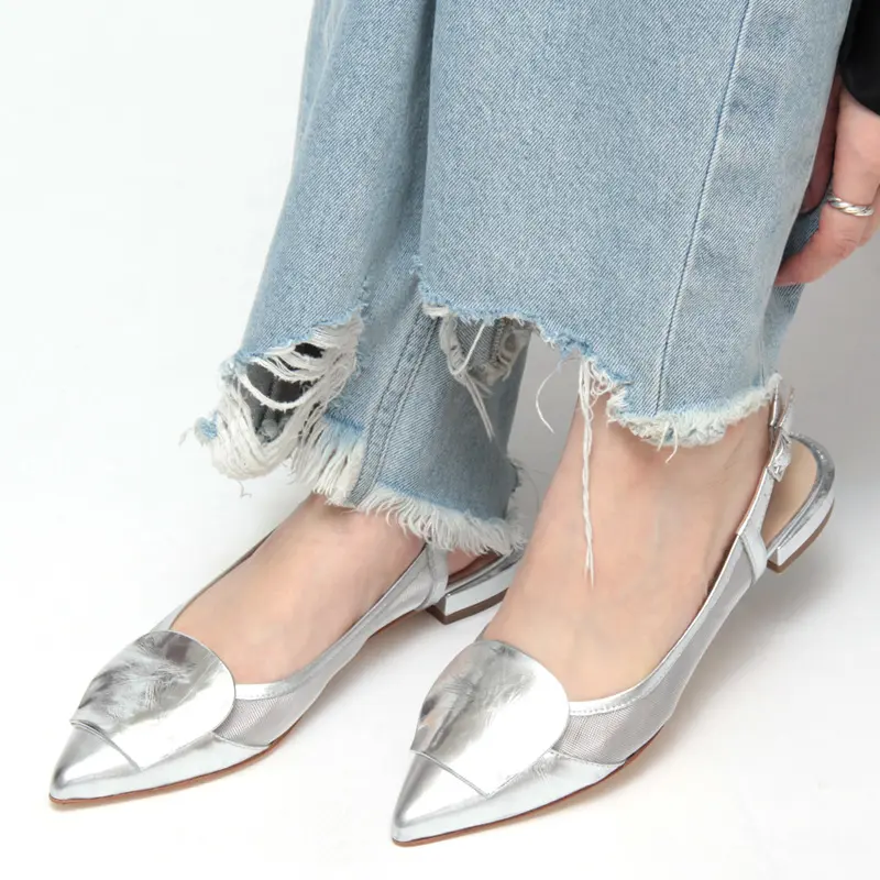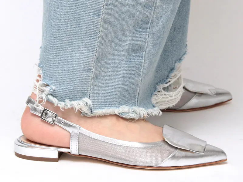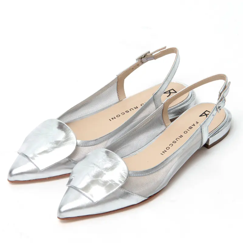 FABIO RUSCONI ファビオルスコーニ チュール バックストラップ パンプス SILVER