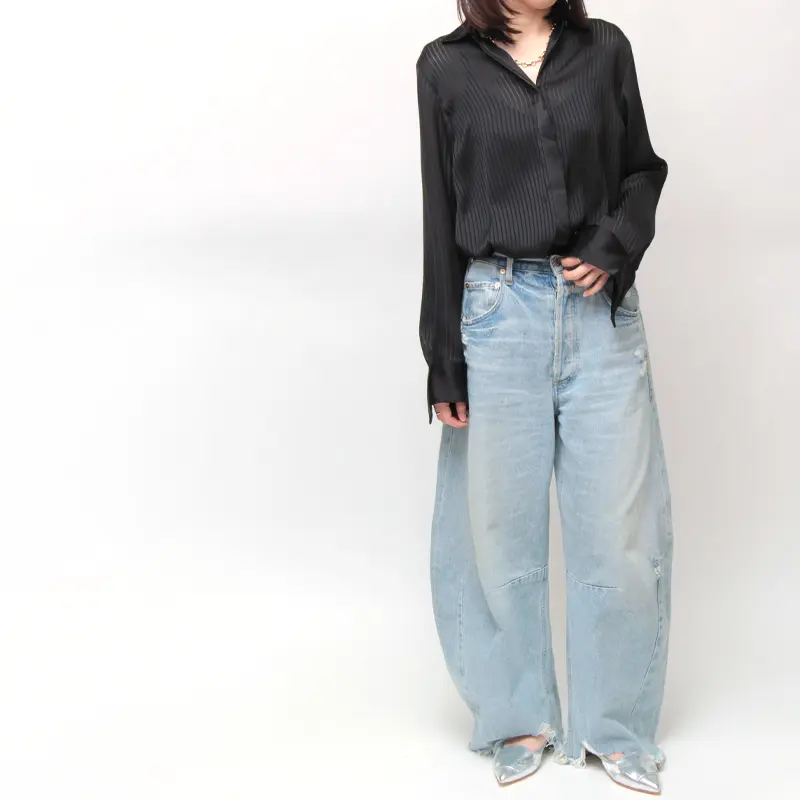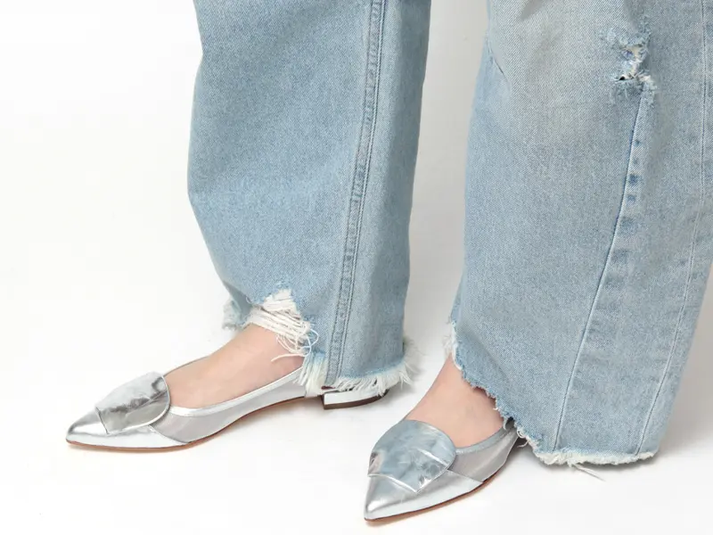 つま先は上品&女性らしさが叶うシャープなポインテッドトゥ。履き口は浅めのカッティングで、足を長く美しく見せてくれます。レトロな雰囲気漂わすオーバルモチーフが目を引き、シースルーの透け感が春夏らしい抜け感を演出します。