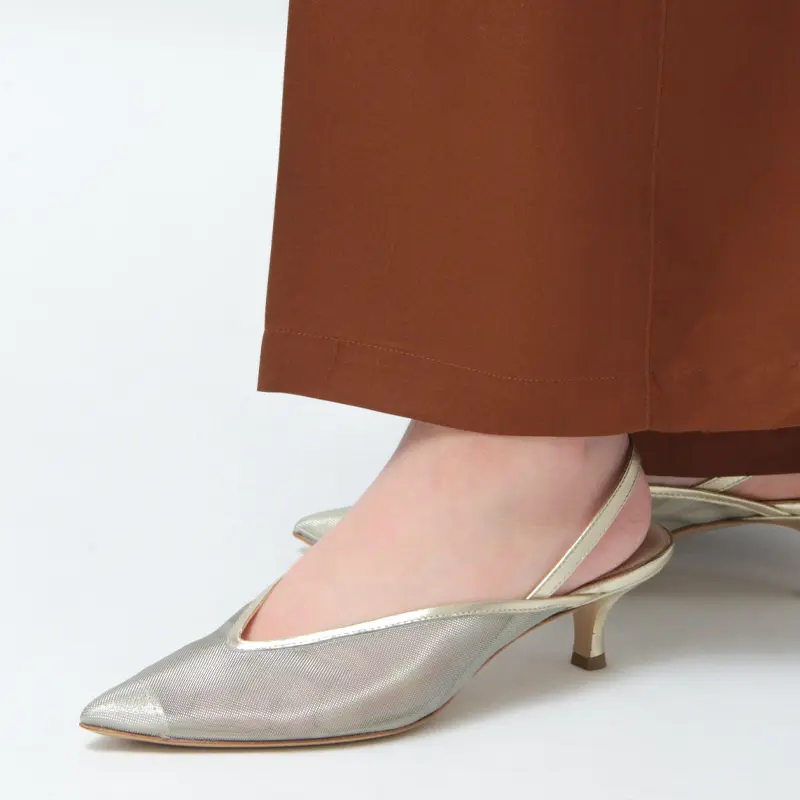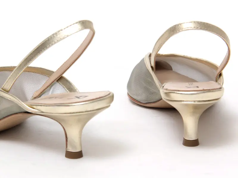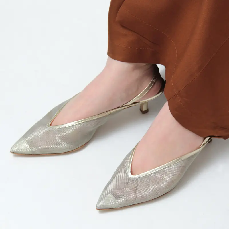 約5cmの程よいヒールが脚を美しく引き立て、歩きやすさも両立。優雅な曲線を描くピンヒールが、後ろ姿までエレガントに演出します。