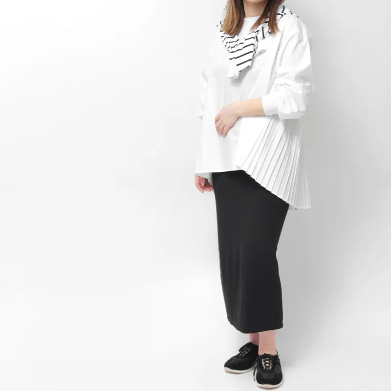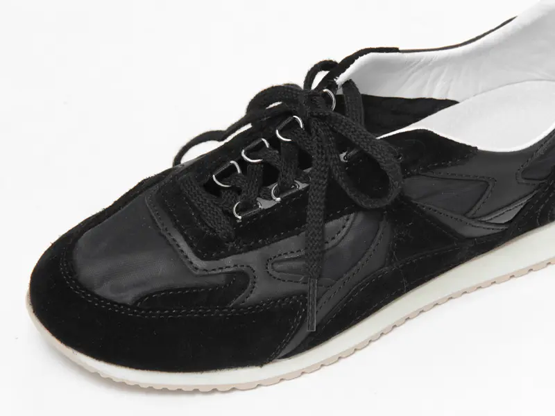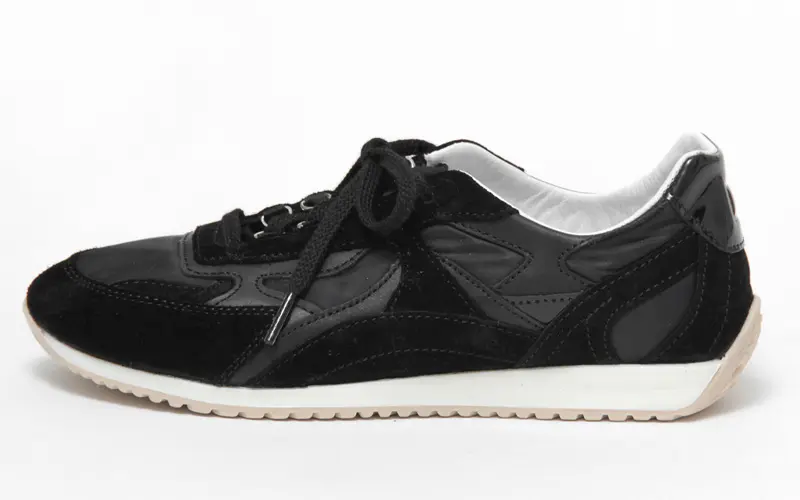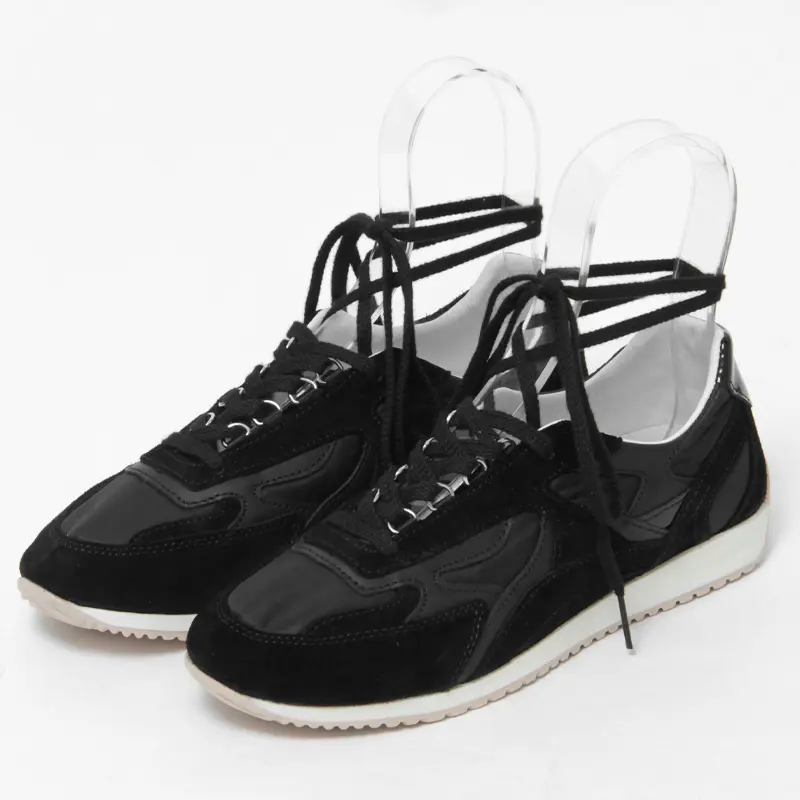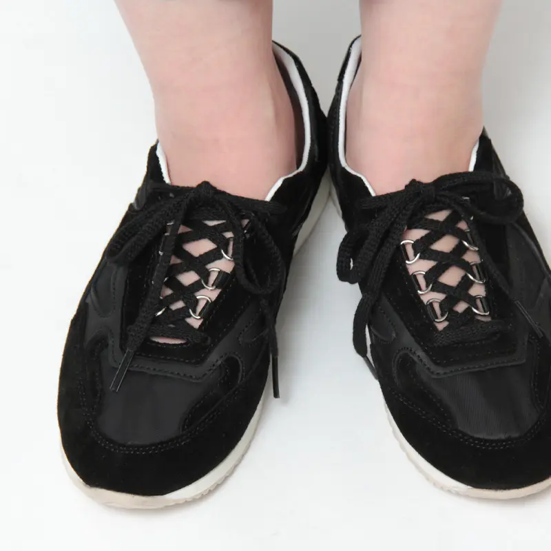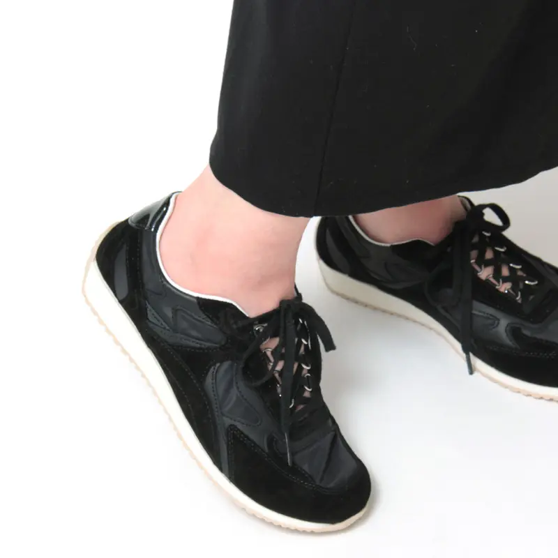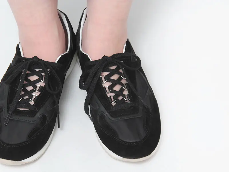ブラックの切り替えがモードにもカジュアルにも馴染み、大人世代が取り入れたくなる他にはないデザイン。ほっこりせず上品に映え、コンサバ派のスタイリングにハマるモノトーンスニーカーです。