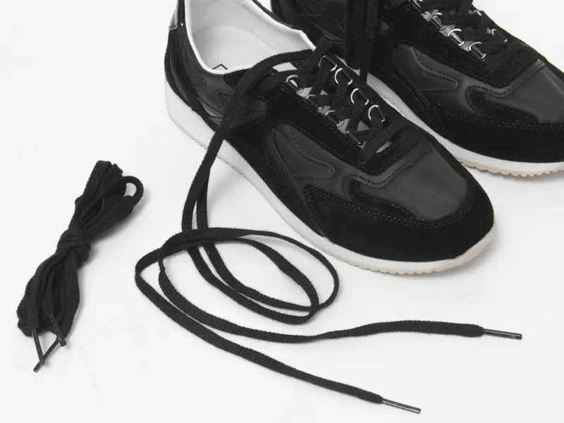 シューレースはロングとショートとの2パターンあります。長い紐は紐を足首に巻くバレリーナのようなスタイルでお楽しみいただけます。