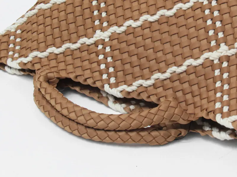 いつものコーデに華やかさをプラスするメッシュトート。肉厚でハリのあるもっちりとした質感のハンドルは継ぎ目なく編まれ、職人の技が光る高級感のある仕上がりです。