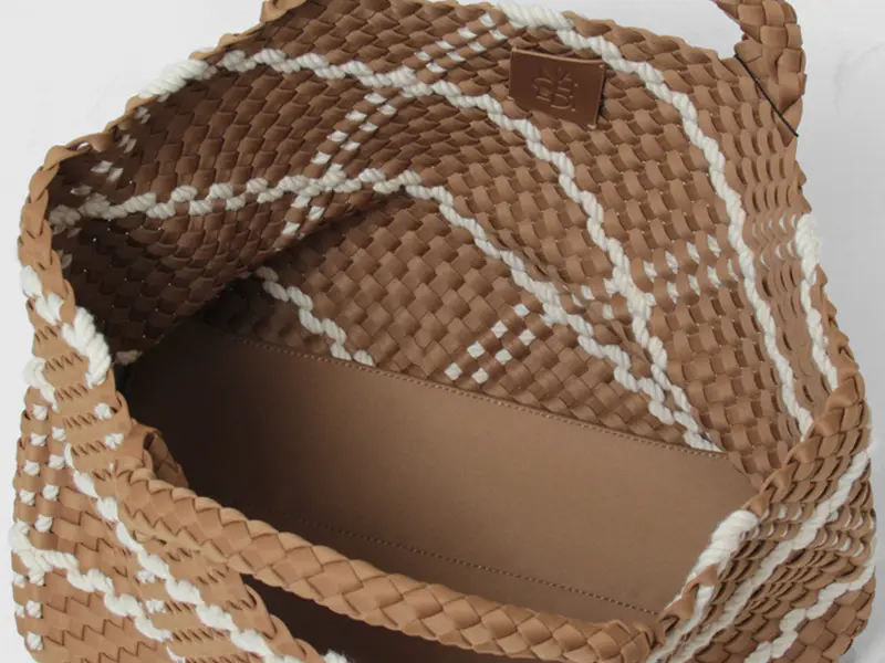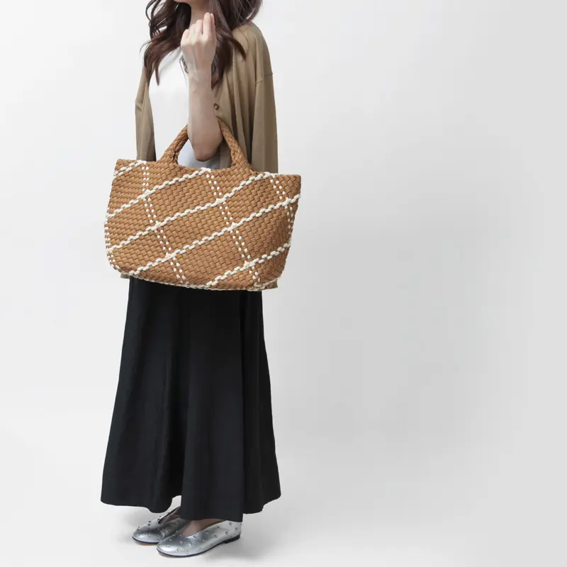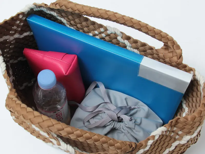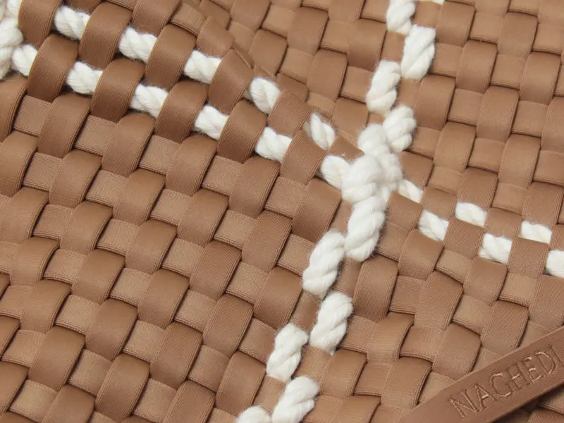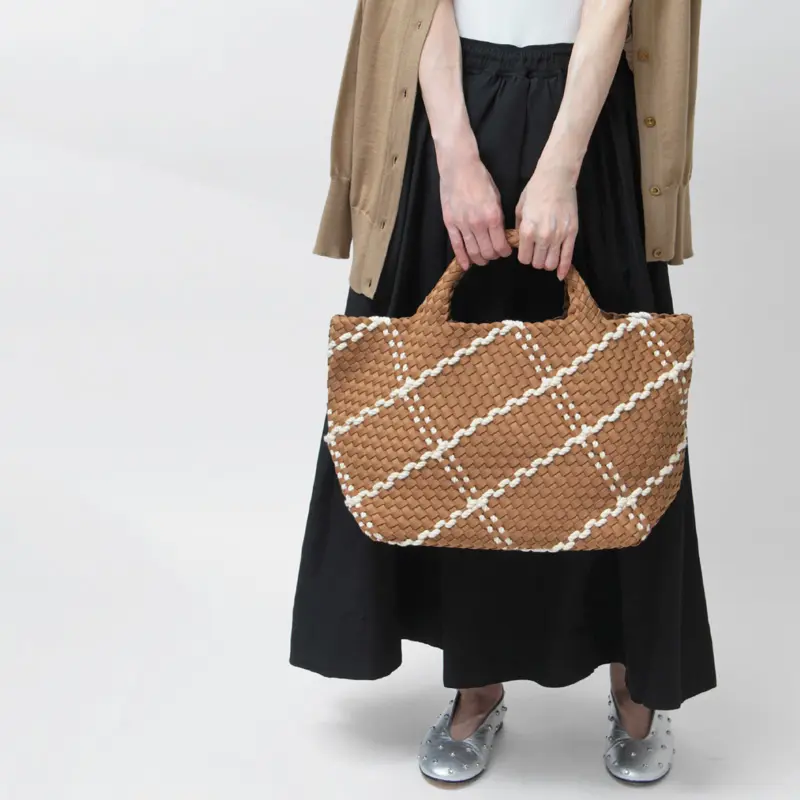 季節を問わず愛され、耐久性のあるバッグをコンセプトに展開されるNY発のバッグブランド"Naghedi/ナゲティ"。「Rope」シリーズはロープを編み込んだディテールが特徴。ダイビングスーツ等にも使われる機能性素材を丁寧に編み込んだメッシュ仕様のトートバッグ。A4サイズがゆったり収まる大容量サイズで、オフの日のカジュアルなスタイルにはもちろん、ビジネスシーンなど幅広いシーンで活躍してくれます。